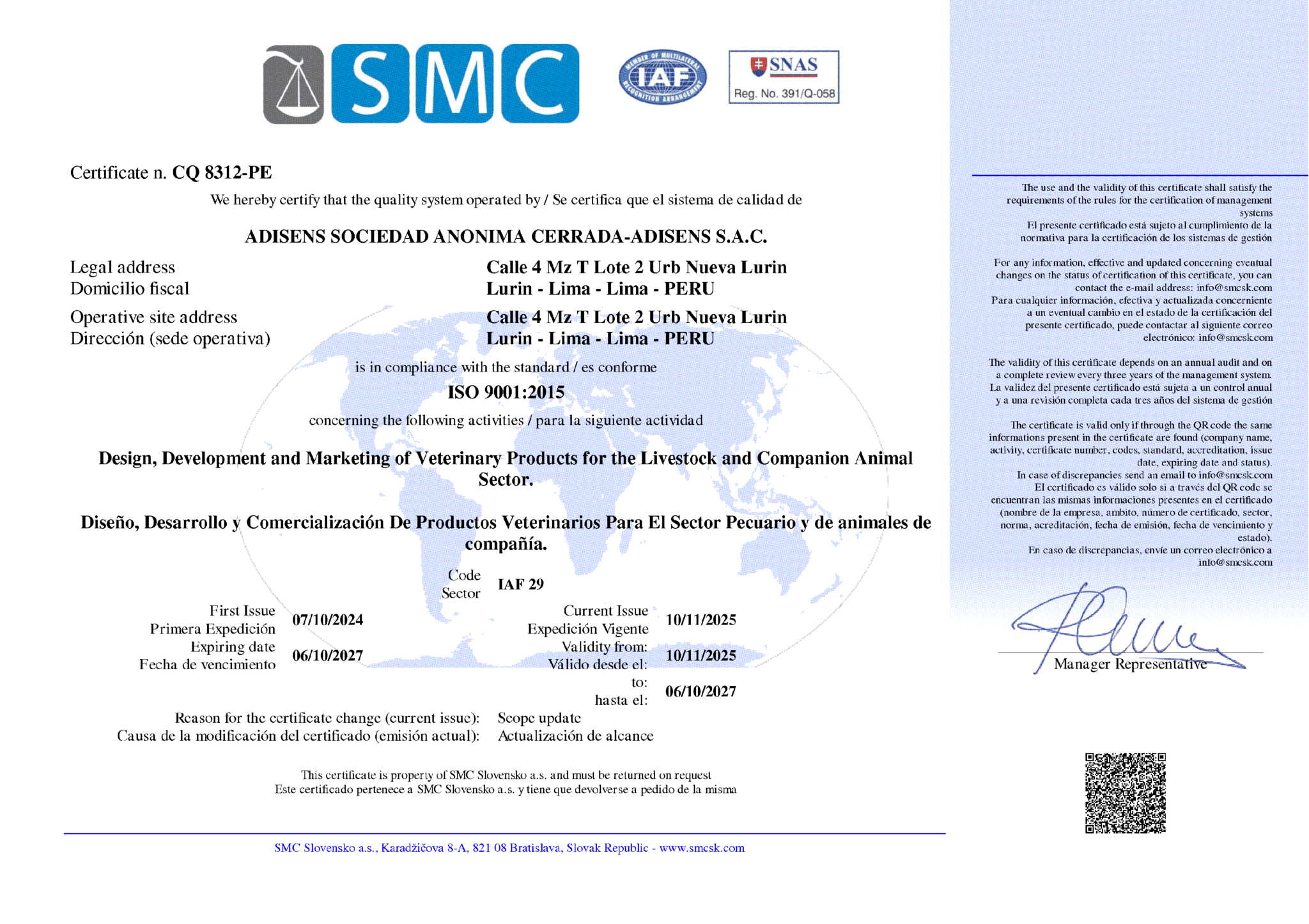 En 2024 se nos otorgó la Certificación ISO 9001:2015 para nuestros procesos de Diseño, Desarrollo y Comercialización de Productos Veterinarios para el sector Pecuario.